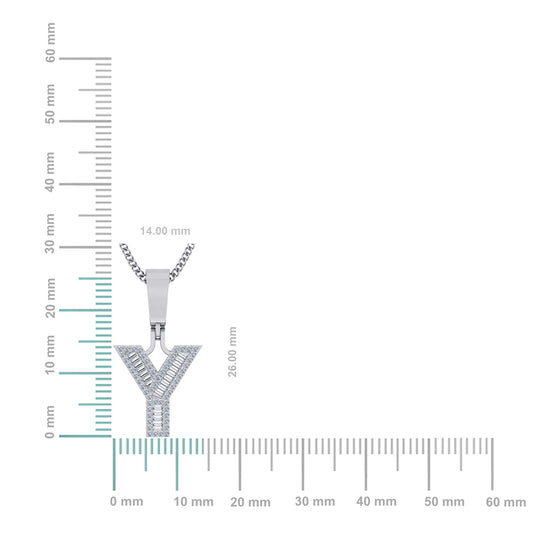 10K White Gold Baguette Initial Y Pendant 1/4 Cttw