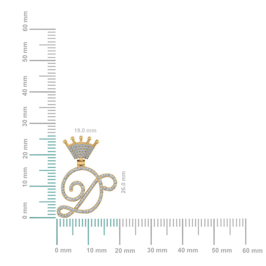 10K Yellow Gold Round Diamond Crown D Letter Initial Pendant 1/4 Cttw