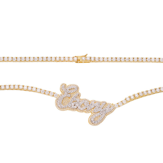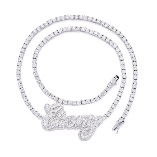 S.Silver Round Moissanite Queen Word Designer 18 Inch Necklace RP 15-5/8 Cttw