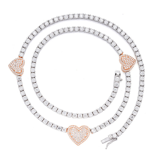 S.Silver Round Moissanite 15mm Heart Designer With 3mm Tennis Chain 18 Inch Necklace RP+GP 1-1/3 Cttw