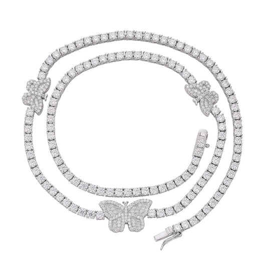 S.Silver Round Baguette Moissanite Butterfly Designer 18 Inch Necklace RP+GP 1-5/8 Cttw