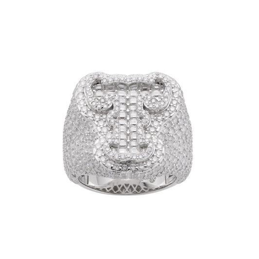 S.Silver Round Baugette Moissanite Albhabet T letter Initial SZ 10 Mens Ring RP 6-3/4 Cttw