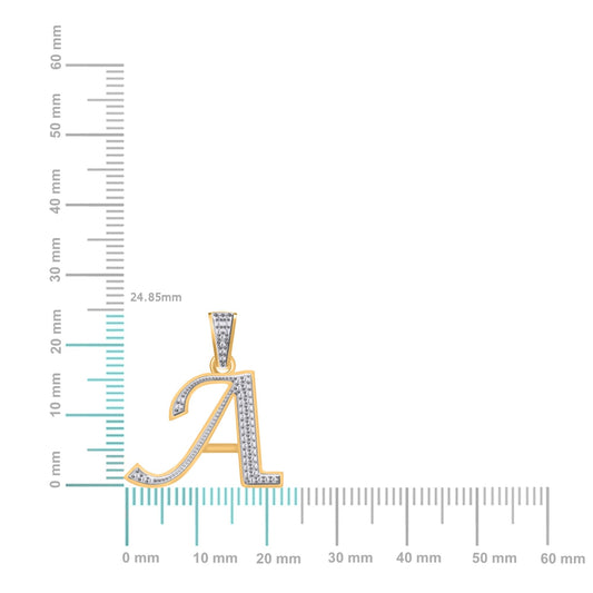 10K Yellow Gold Round Diamond A Letter Initial Pendant 1/5 Cttw