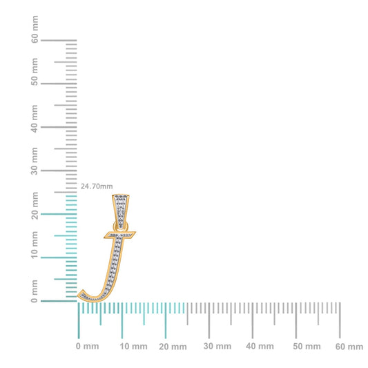 10K Yellow Gold Round Diamond J Letter Initial Pendant 1/10 Cttw