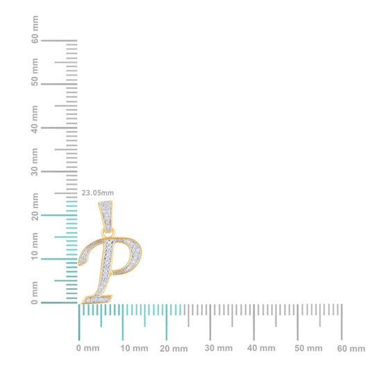 10K Yellow Gold Round Diamond P Letter Initial Pendant 1/10 Cttw