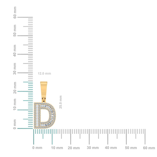10K Yellow Gold Baguette Diamond Initial D Letter Pendant 1/2 Cttw