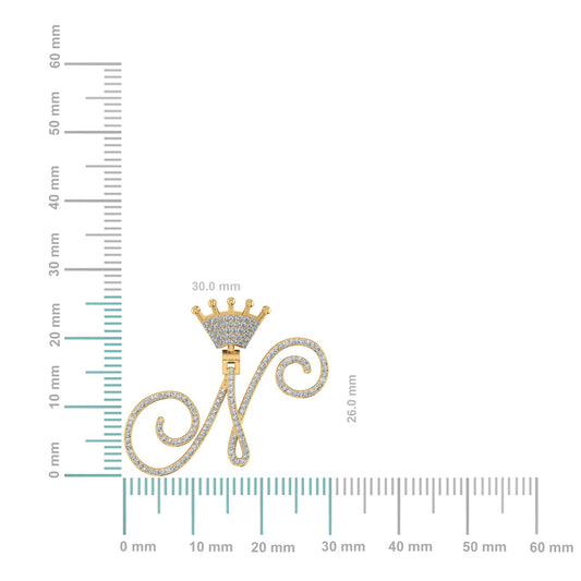 10K Yellow Gold Round Diamond Crown W Letter Initial Pendant 1/4 Cttw