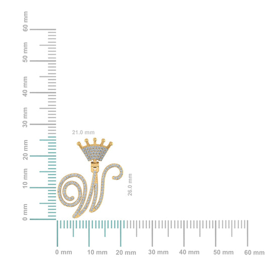 10K Yellow Gold Round Diamond Crown V Letter Initial Pendant 1/4 Cttw