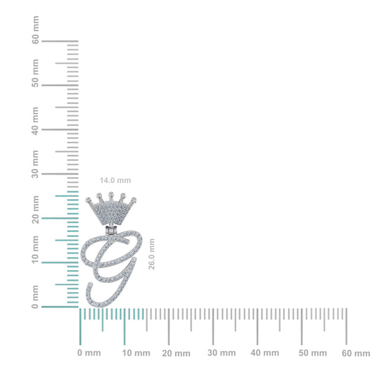 10K White Gold Round Diamond Crown G Letter Initial Pendant 1/5 Cttw