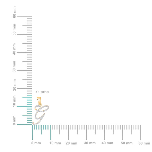 10K Yellow Gold Round Diamond E Letter Initial Pendant 1/6 Cttw