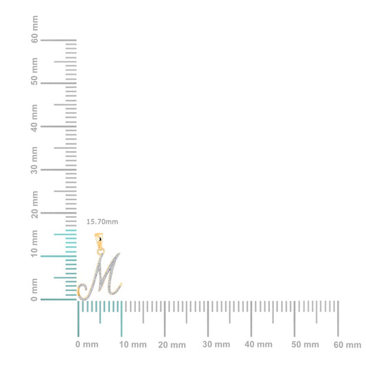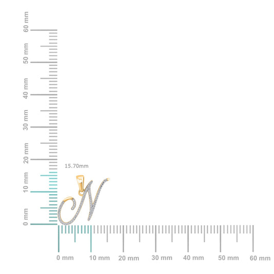 10K Yellow Gold Round Diamond M Letter Initial Pendant 1/8 Cttw
