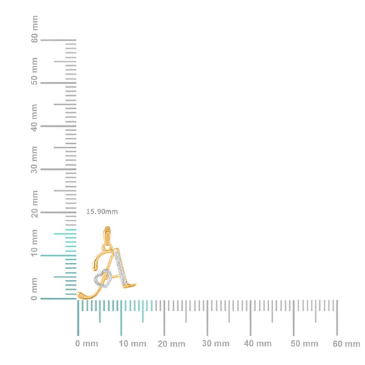 10K Yellow Gold Round Diamond A Letter Initial With Heart Pendant 1/10 Cttw