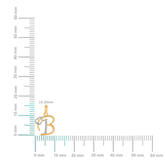 10K Yellow Gold Round Diamond B Letter Initial With Heart Pendant 1/10 Cttw