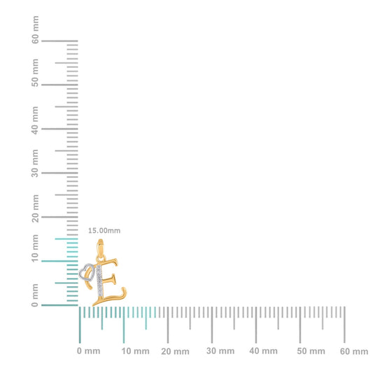 10K Yellow Gold Round Diamond E Letter Initial With Heart Pendant 1/10 Cttw