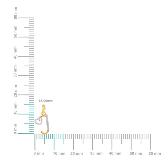 10K Yellow Gold Round Diamond J Letter Initial With Heart Pendant 1/10 Cttw