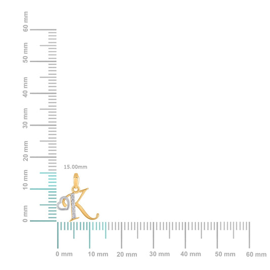 10K Yellow Gold Round Diamond K Letter Initial With Heart Pendant 1/10 Cttw