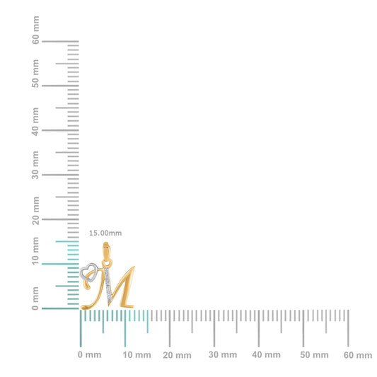10K Yellow Gold Round Diamond M Letter Initial With Heart Pendant 1/10 Cttw