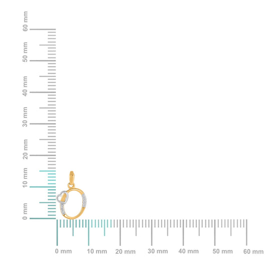 10K Yellow Gold Round Diamond O Letter Initial With Heart Pendant 1/10 Cttw