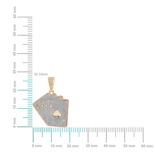 10K Yellow Gold Round Diamond Flush Cards Pendant 1-5/8 Cttw