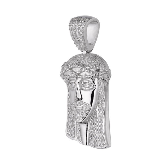 S.Silver Moissanite Jesus Face Religious Pendant RP+GP 3-1/3 Cttw