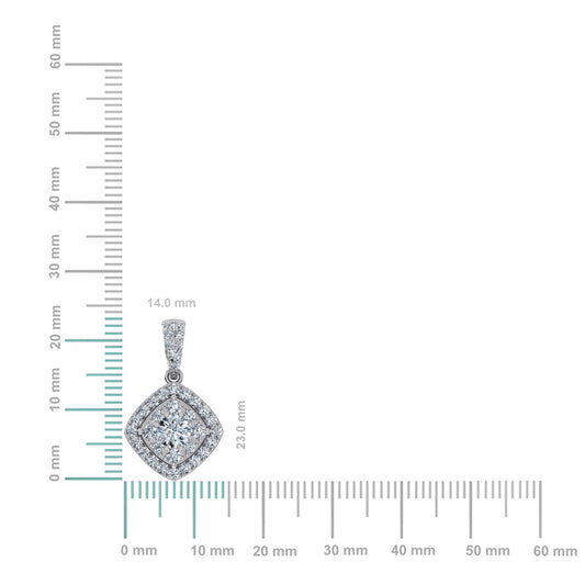 14K White Gold Round Moissanite Square Shape Womens Designer Pendants 1 Cttw