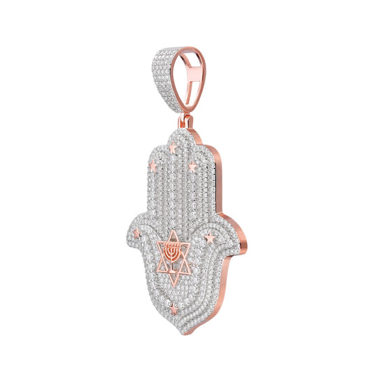 S.Silver Round Moissanite Hamza Hand Religious Pendant RP+GP 4-5/8 Cttw