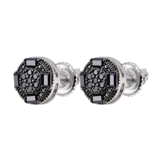 S.Silver Round Baguette Black Moissanite Square Shape Stud Earrings BP+BP 7/8 Cttw