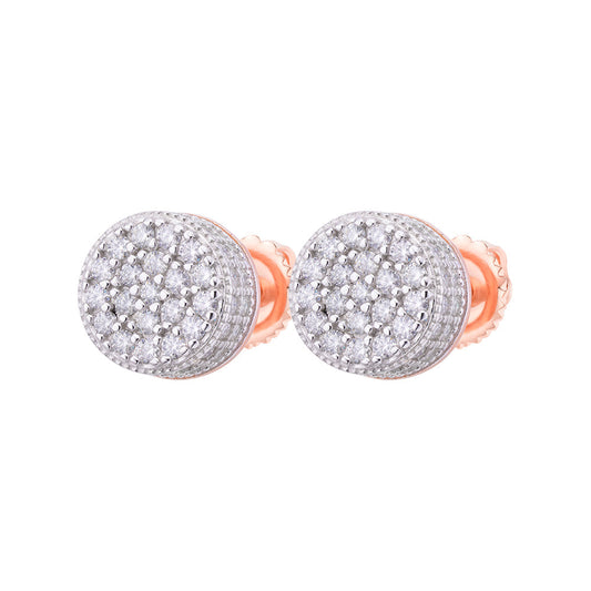 S.Silver Round Moissanite Cross Religious Stud Earrings RP+GP 7/8 Cttw