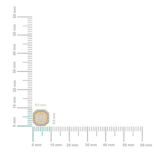 14K Yellow Gold Round Baguette Diamond Square Shape Stud Earrings 5/8 Cttw