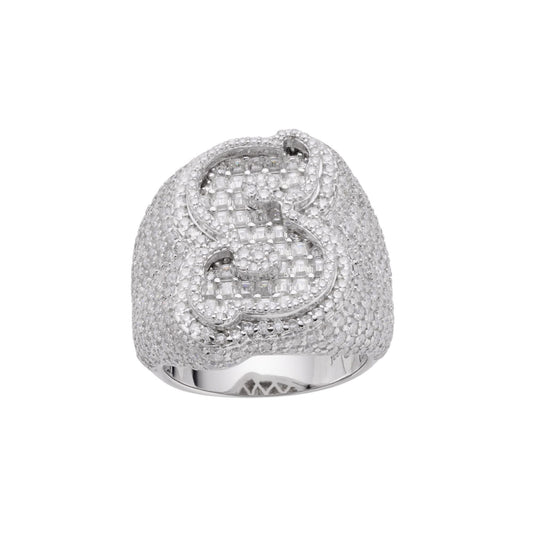 S.Silver Round Baugette Moissanite Albhabet S letter Initial SZ 10 Mens Ring RP 7-3/8 Cttw