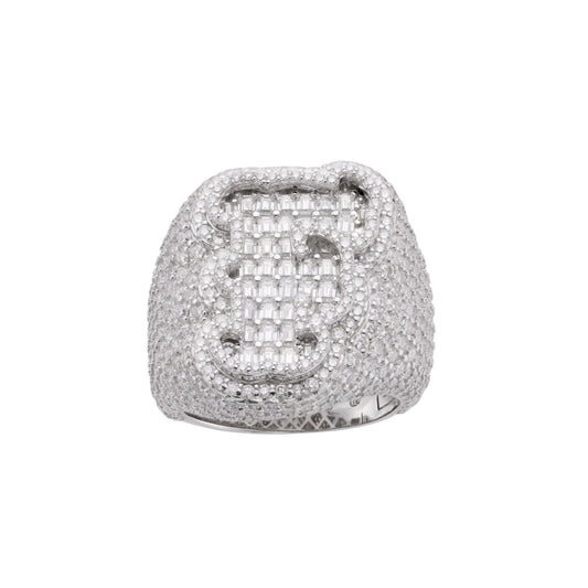 S.Silver Round Baugette Moissanite Albhabet F letter Initial SZ 10 Mens Ring RP 7-1/4 Cttw