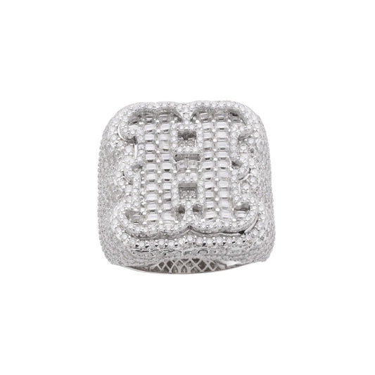 S.Silver Round Baugette Moissanite Albhabet H letter Initial SZ 10 Mens Ring RP 7-7/8 Cttw