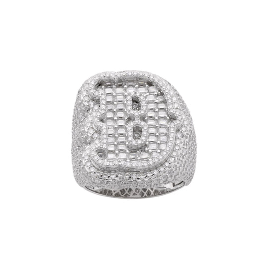S.Silver Round Baugette Moissanite Albhabet C letter Initial SZ 10 Mens Ring RP 7-1/10 Cttw