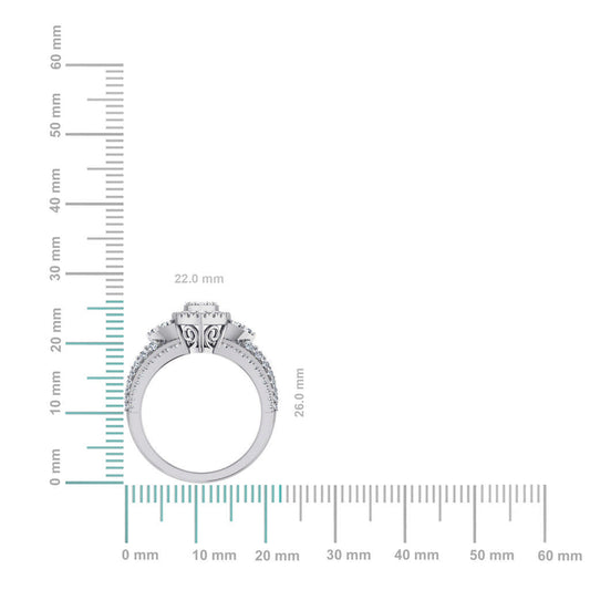 10K White Gold Womens Round Diamond Big Bridal Cushion Shape Ring 1-1/2 Cttw