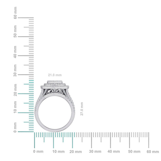 10K White Gold Round Diamond Halo Big Bridal Cluster Ring 1-5/8 Cttw