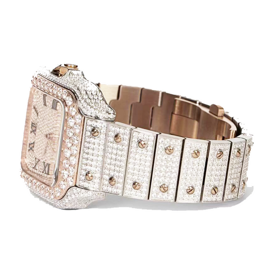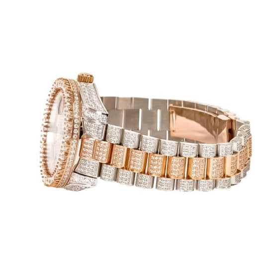 Moissanite Stainless Steel Two Tone Rose Band Mens Watch