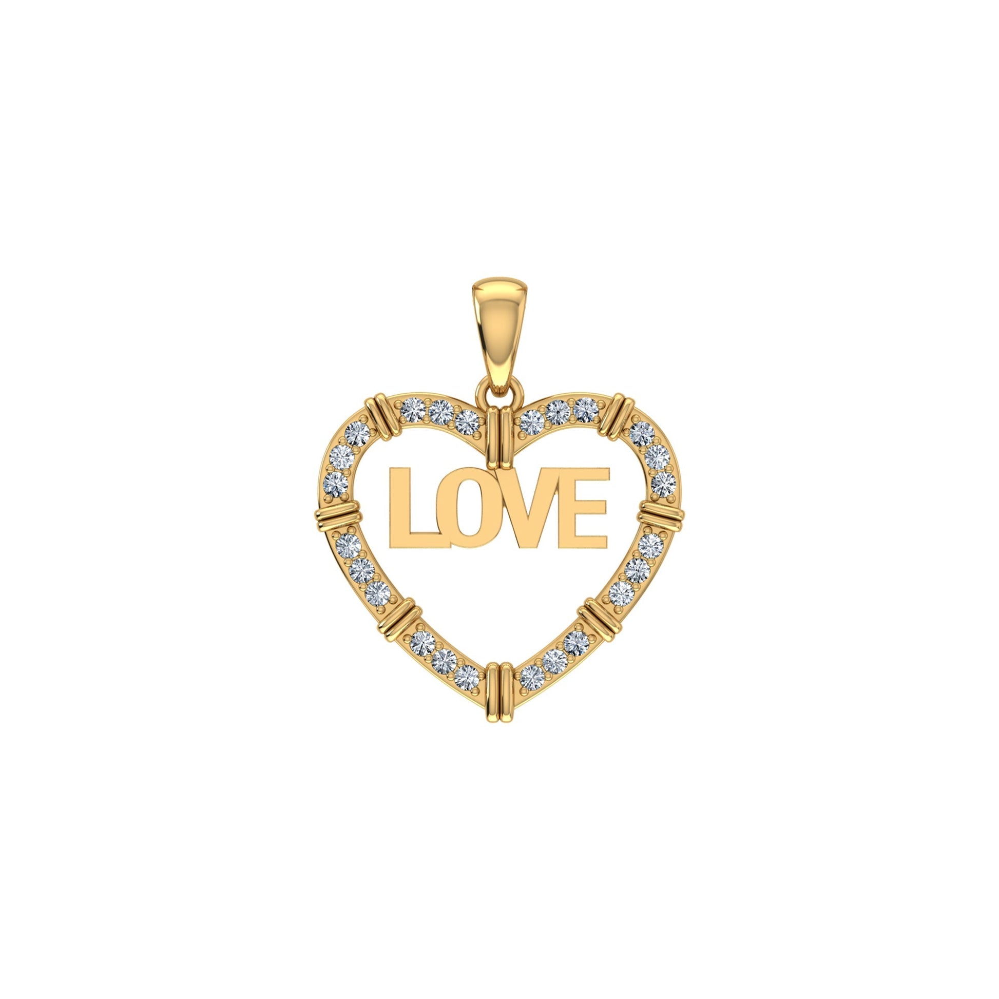 10K Yellow Gold Round Diamond Womens Love Heart Pendant 1/4 Cttw