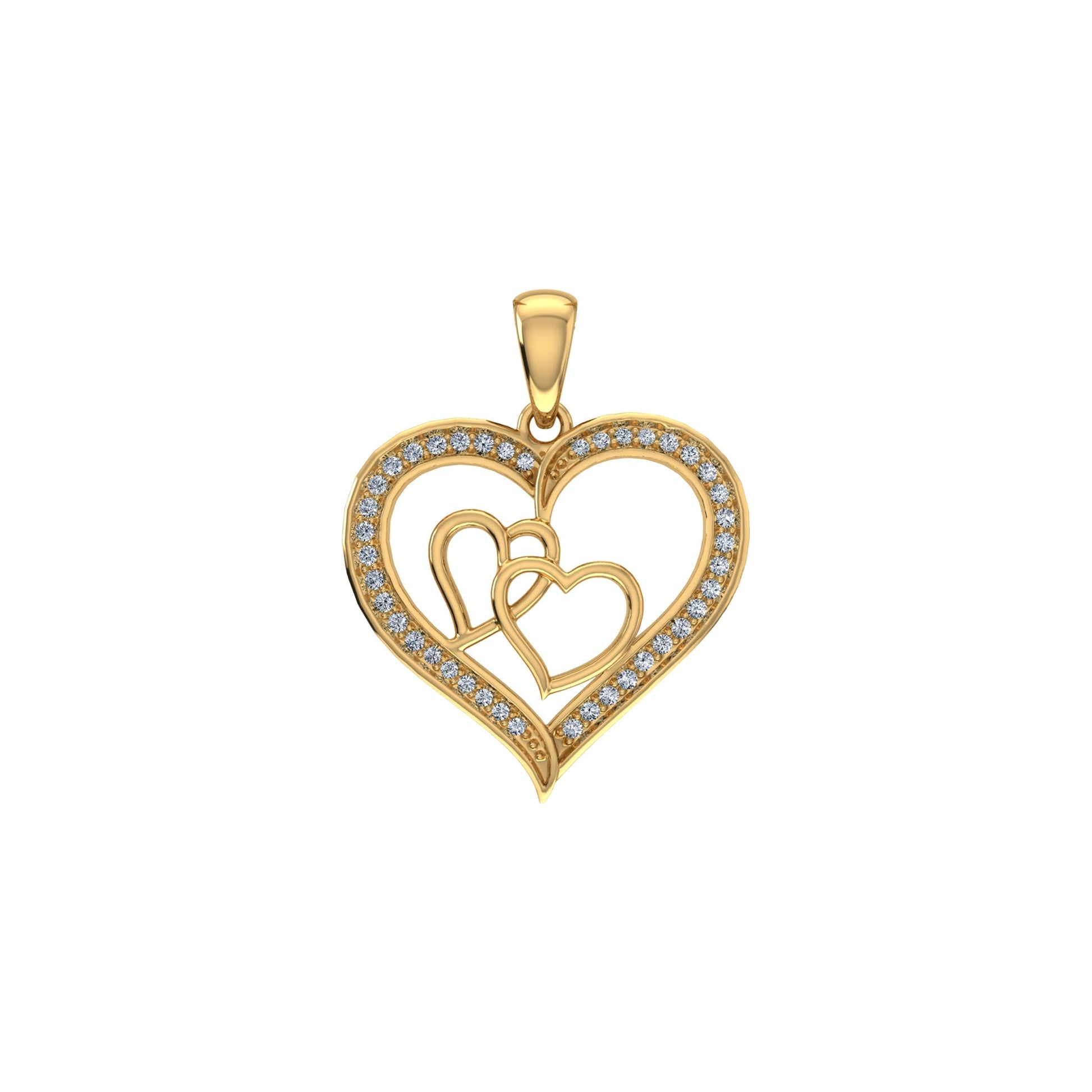 10K Yellow Gold Round Diamond Womens Double Heart Pendant 1/8 Cttw