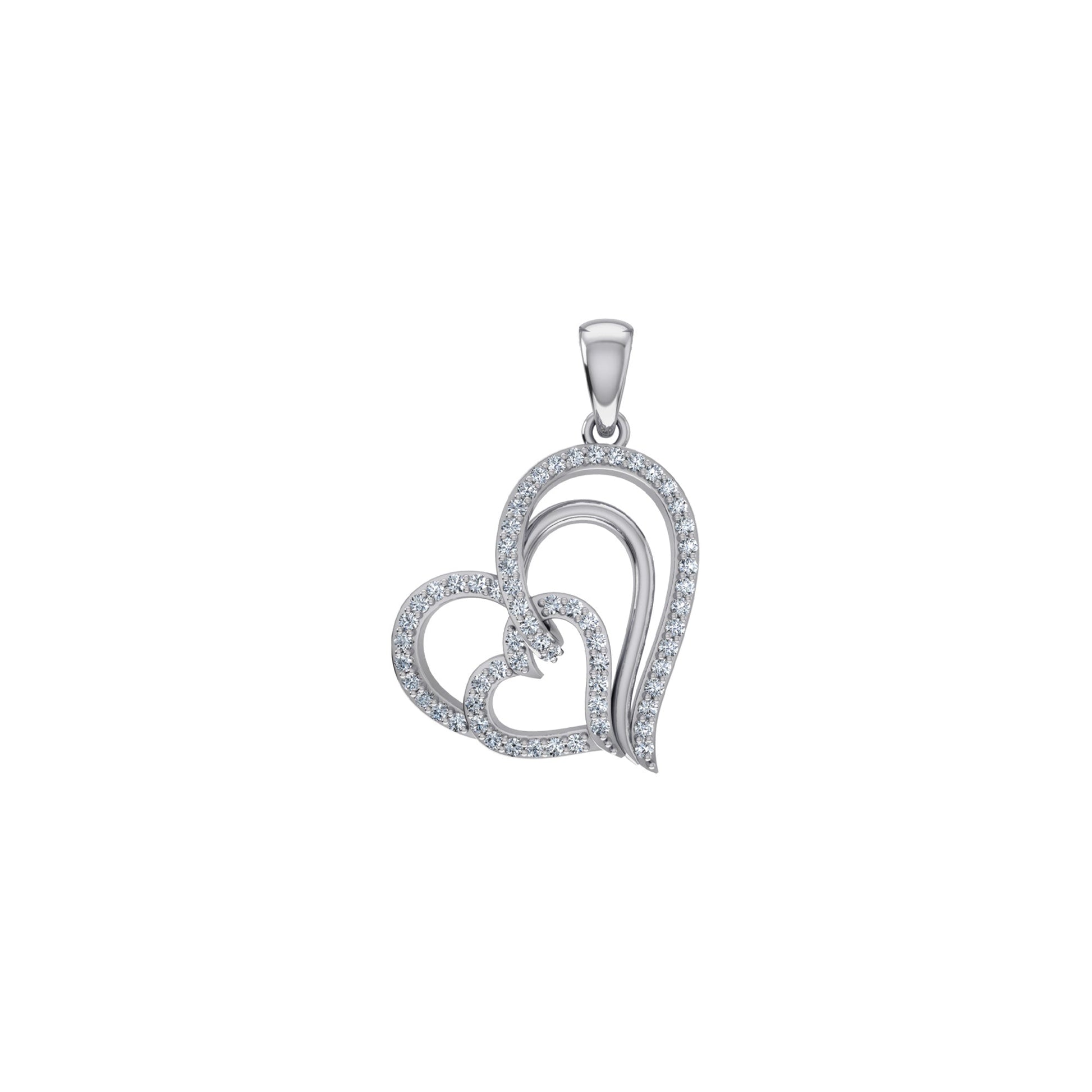 10K White Gold Round Diamond Womens Double Heart Pendant 1/4 Cttw
