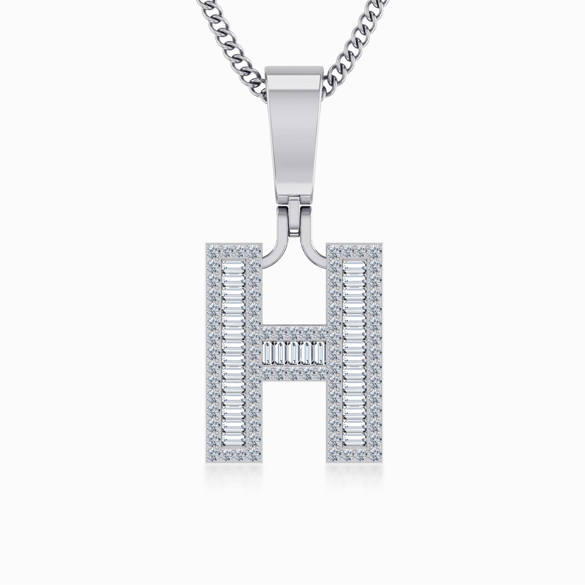 10K White Gold Tw Baguette Initial H Pendant 3/8 Cttw