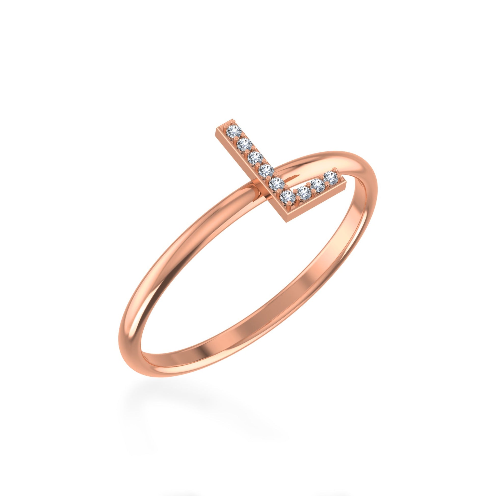 10K Rose Gold Womens Round Diamond L Initial Letter Ring 1/25 Cttw