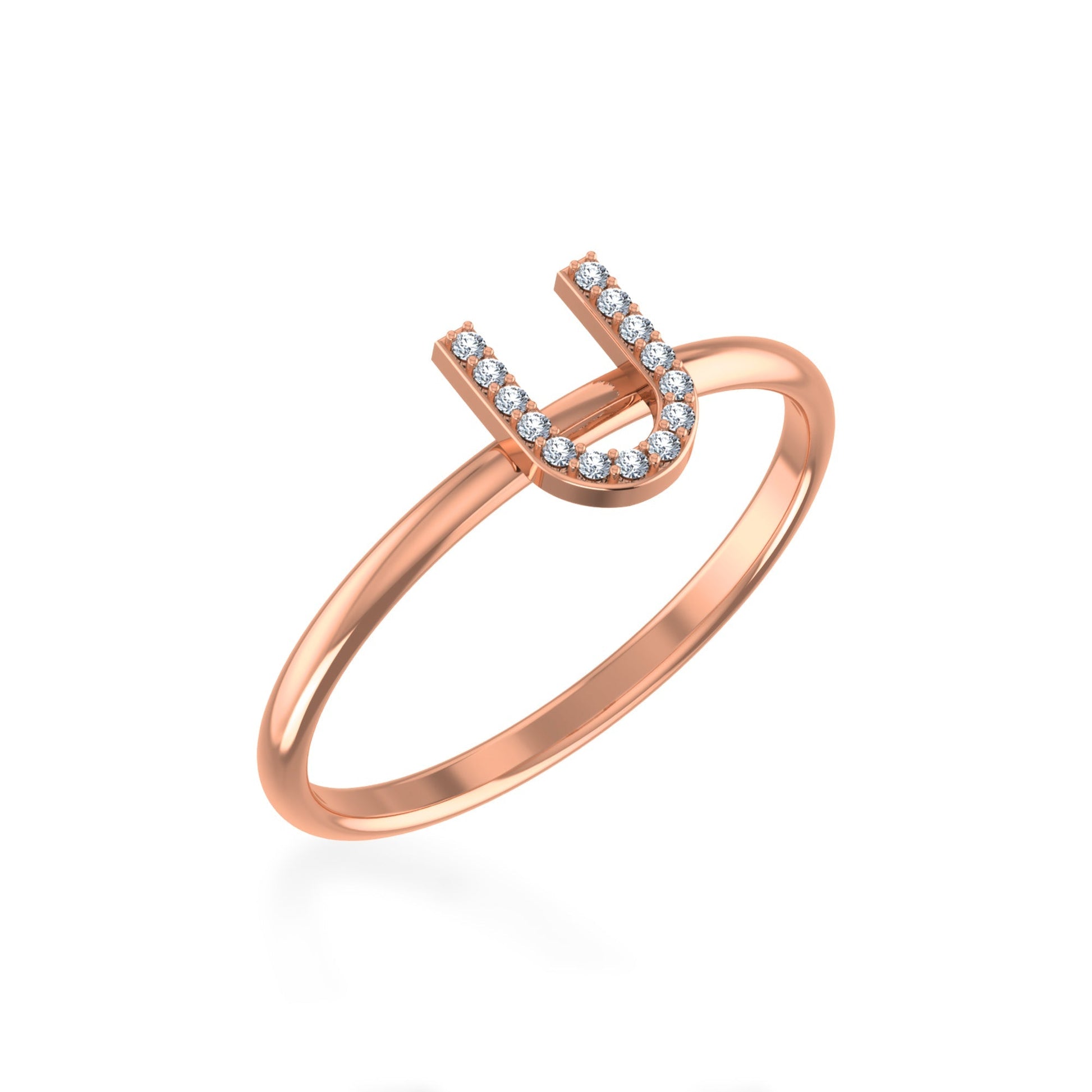10K Rose Gold Womens Round Diamond U Initial Letter Ring 1/25 Cttw