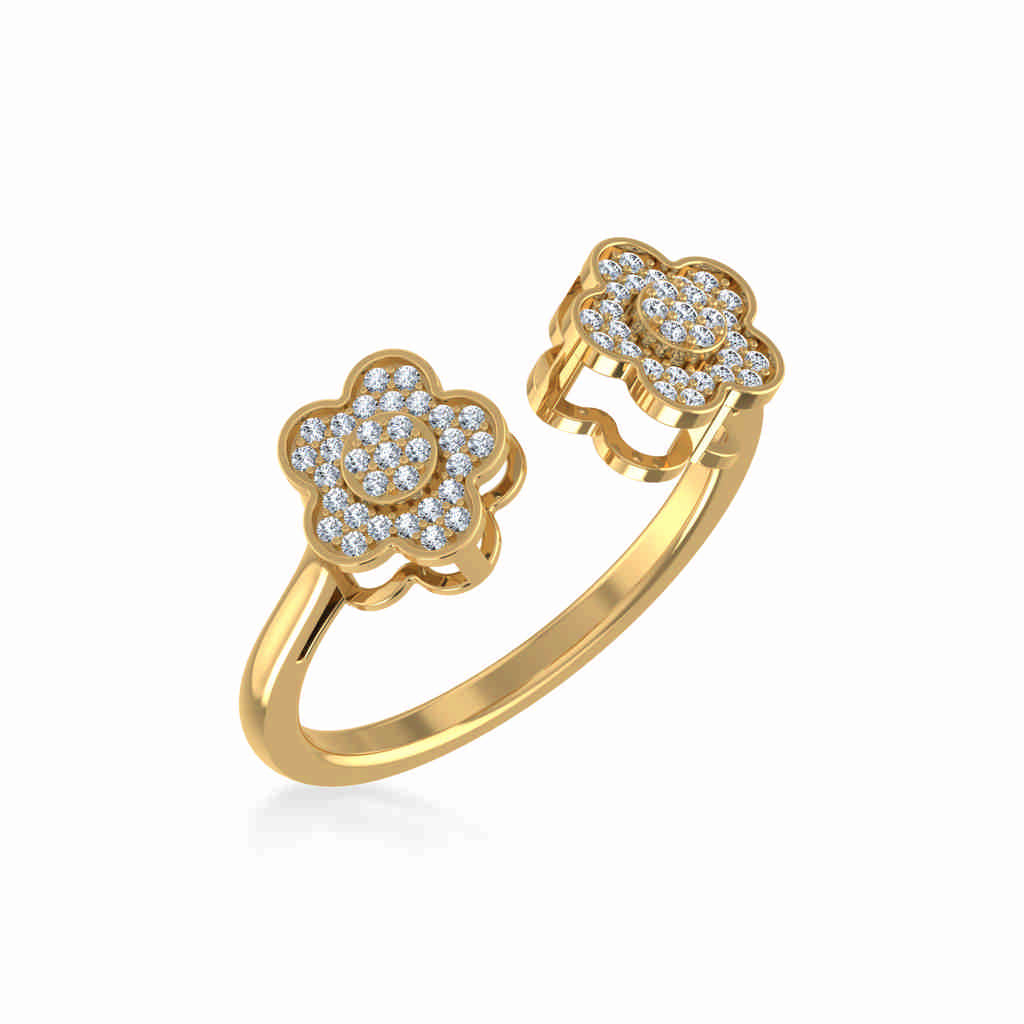 10K Yellow Gold Womens Round Diamond Floral Cluster Top Open Ring 1/5 Cttw