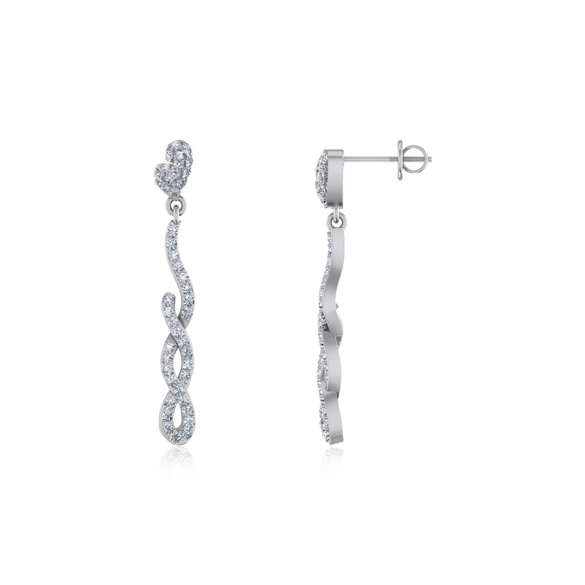 10K White Gold Round Diamond Infinity Dangling Earrings 1/2 Cttw