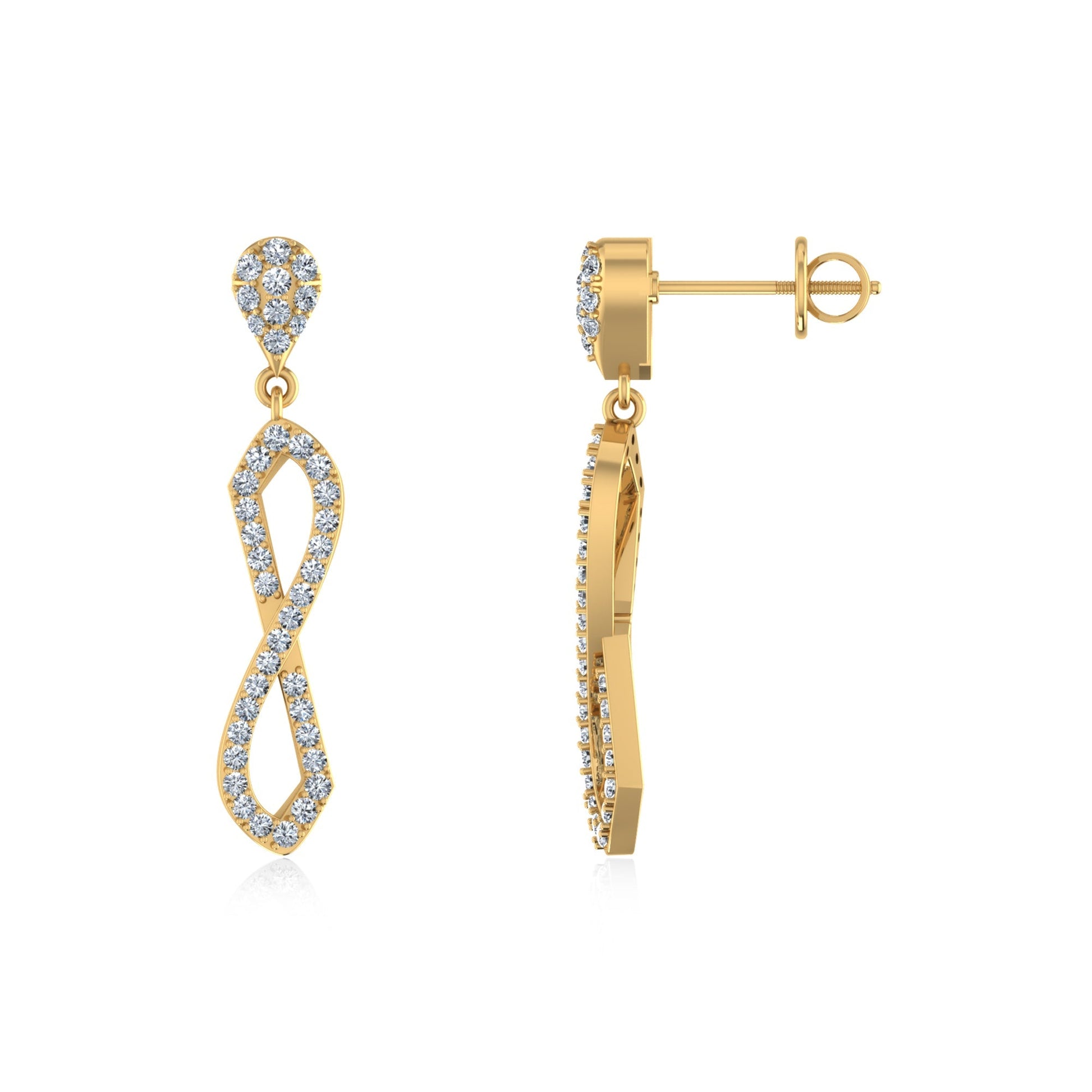 10K Yellow Gold Round Diamond Twisted Dangling Earrings 7/8 Cttw