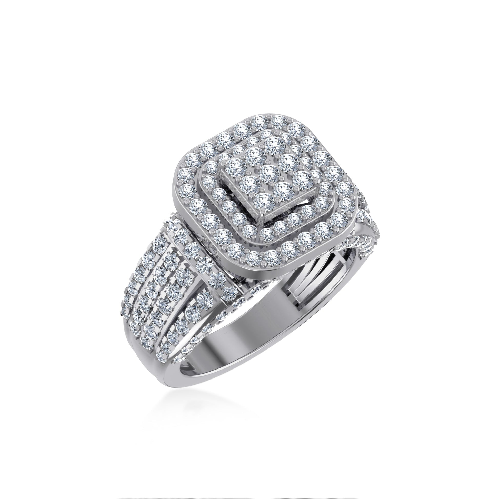10K White Gold Round Diamond Square Shape Sz 7 Head Ladies Ring 2 Cttw