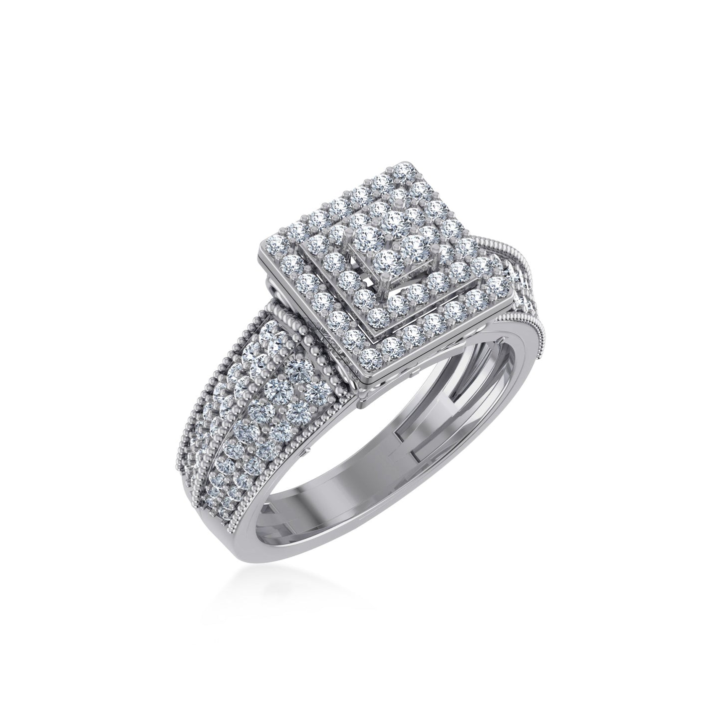 10K White Gold Round Diamond Square Shape Sz 7 Head Ladies Ring 1 Cttw