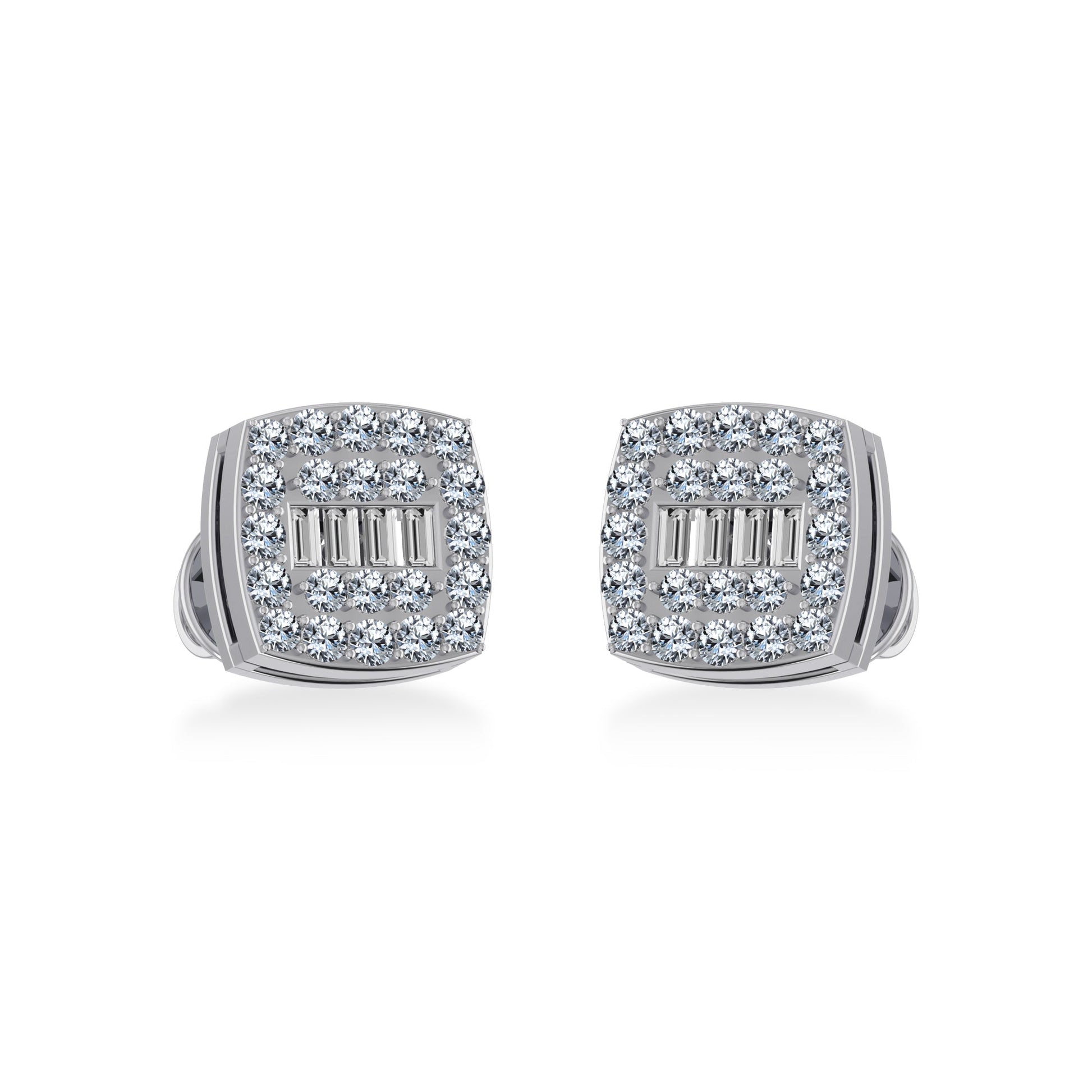 10K White Gold Round Baguette Diamond Square Shape Cluster Stud Earring 1/4 Cttw