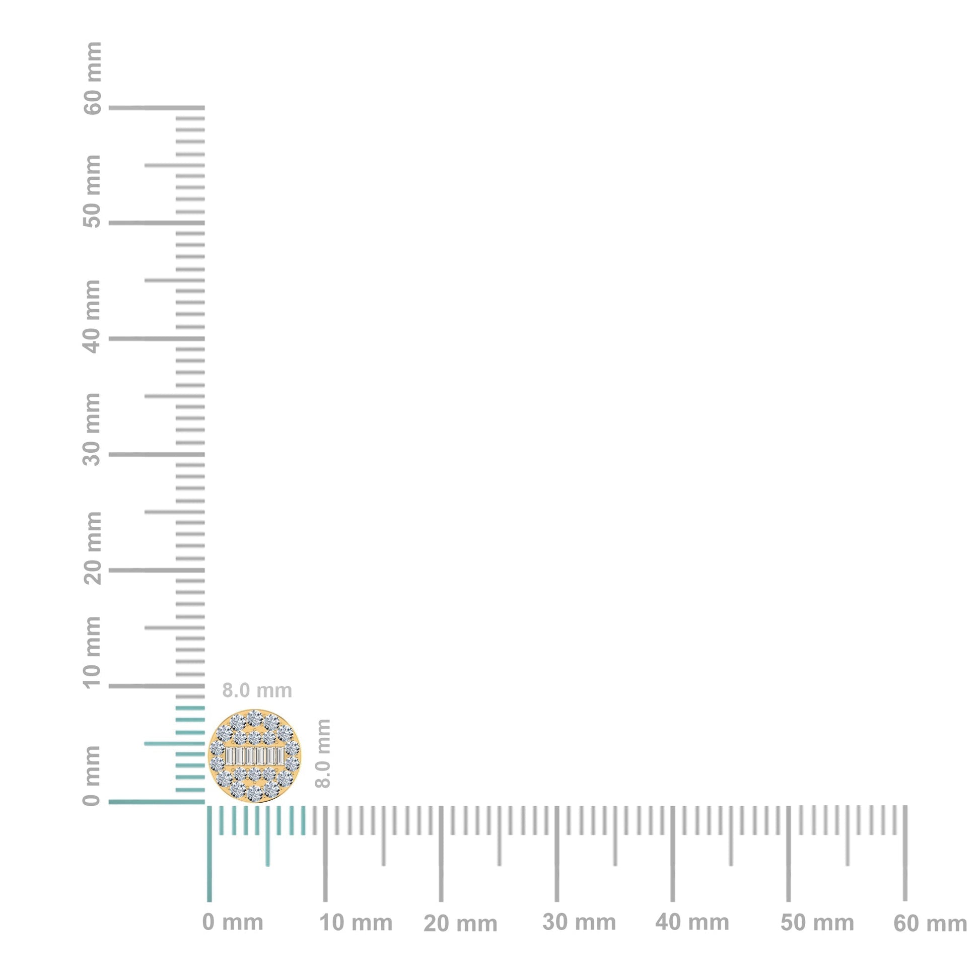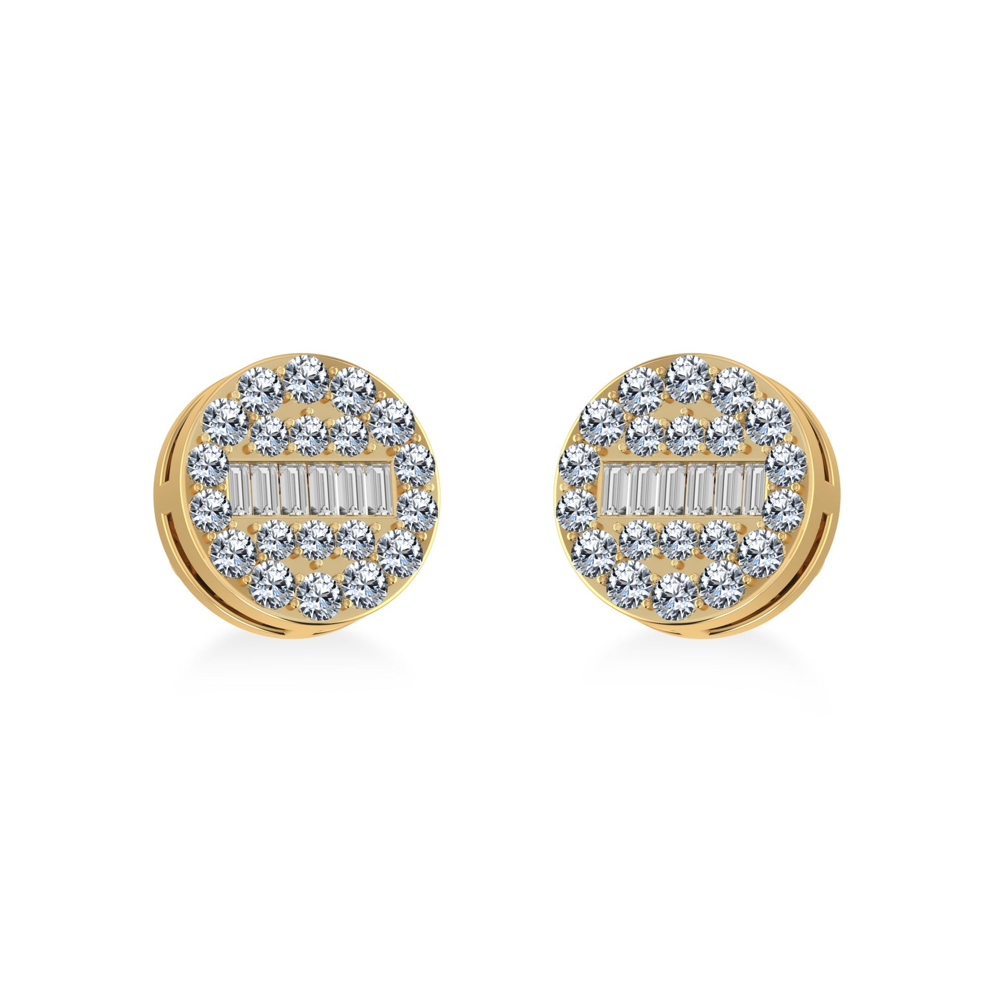 10K Yellow Gold Round Baguette Diamond Cluster Stud Earring 3/8 Cttw