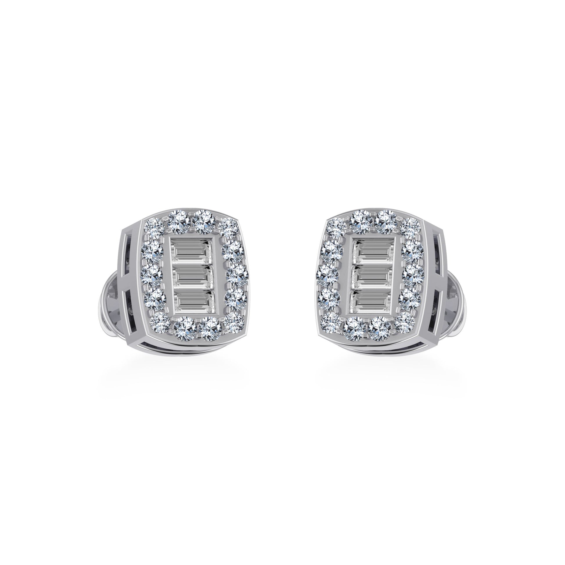 10K White Gold Round Baguette Diamond Square Shape Stud Earrings 1/5 Cttw